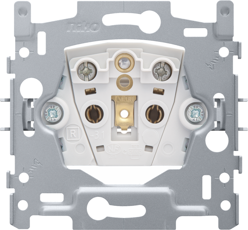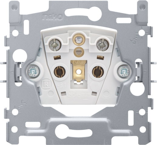 Mechanismus für eine Wandsteckdose ohne Erdung, mit Krallenbefestigung und mit integriertem erhöhten Berührungsschutz. Diese Wandsteckdose hat eine Einbautiefe von 21 mm. Eine Abdeckung und eine Blende in der gewünschten Farbe müssen separat bestellt werden. Dieser Artikel ist durch mindestens ein Patent (Anmeldung) geschützt. Weitere Informationen zu Patenten finden Sie auf www.niko.eu/innovation.